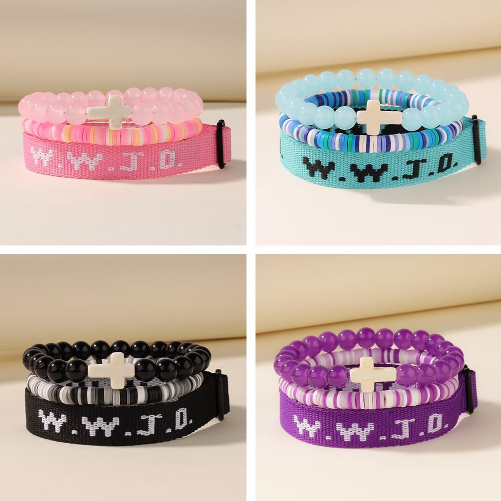 3pc what would jesus do wwjd bracelets women men cross hwlf bracelet he would love first pink elevat